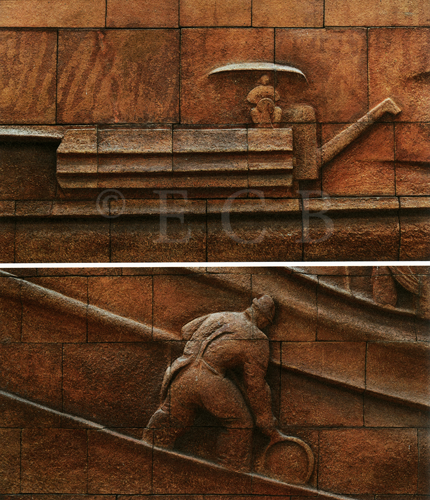 V období 1948—1989 se plastika výrazně uplatnila také v rámci interiérů nově vzniklých veřejných budov. Bohumil Dobiáš ml. (1929—2001) vytvořil keramický reliéf Les pro hotel Gomel a keramický reliéf Proměny socialistického zemědělství (1974) pro 2. poschodí Muzea dělnického revolučního hnutí (Jihočeská vědecká knihovna), kde se nachází také skleněná plastika Sklářství od Josefa Soukupa (1919—2004) a bratří Vladimíra (1925—1998) a Zdeňka (1930—2020) Kepkových. O poschodí níže se nachází dřevěný reliéf (1975) sochaře a keramika Václava Markupa (1904—1995). Ve spojení s architekturou realizoval svá díla také keramik A. Škoda. Výše uvedená díla však tvoří pouhý zlomek z plastik, která byla vytvořena mezi léty 1948—1989 pro veřejná prostranství či průčelí a interiéry veřejných budov a která v souvislosti s přestavbami celých lokalit či jednotlivých budov postupně mizí.