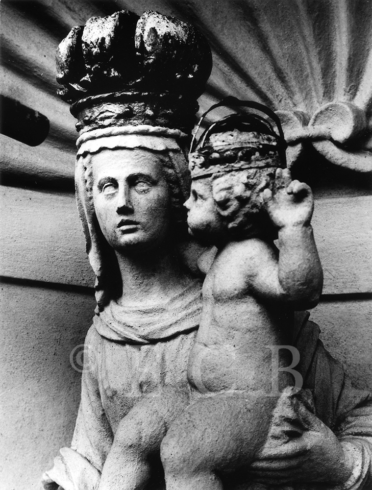 Dalekosáhlá rekonstrukce dala příležitost i jiným umělcům, nejen architektům. Poněkud toporné štukové figury do výklenků nad portály dodal Thomas Zeissel. Jako nejdůležitější byla vnímána mariánská socha ve štítu, později vyměněná za mladší. Byla objednána 1644 v Linci a svěřena tamějším sochařům Giovannimu Battistovi Spezzovi a Wolfu Ederovi. Hlavní oltář vyzdobil obrazem svatého Mikuláše křísícího mrtvé děti ve sklepení hostince vídeňský malíř Georg Bachmann (1613—1652). Z toho je patrné, že mezi městem a sousedním Rakouskem probíhaly intenzivní styky, naproti tomu vazba k českému prostředí prakticky chybí. To se potvrdilo i o něco později (1666—1667), kdy byl budován oltář svatého Auratiana, patrona Českých Budějovic. Ke zhotovení oltáře byli znovu přizváni cizinci. Řezbářské práce měl dodat původem tyrolský sochař Johann Worath (1605—1680), usazený nedaleko za rakouskými hranicemi v Markt Aigen. Hlavní obraz byl objednán ve Vídni u vlašského malíře Matthause Managetty (1630—1680). Orientace na Podunají odpovídá i vzrůstajícímu německému živlu ve městě.