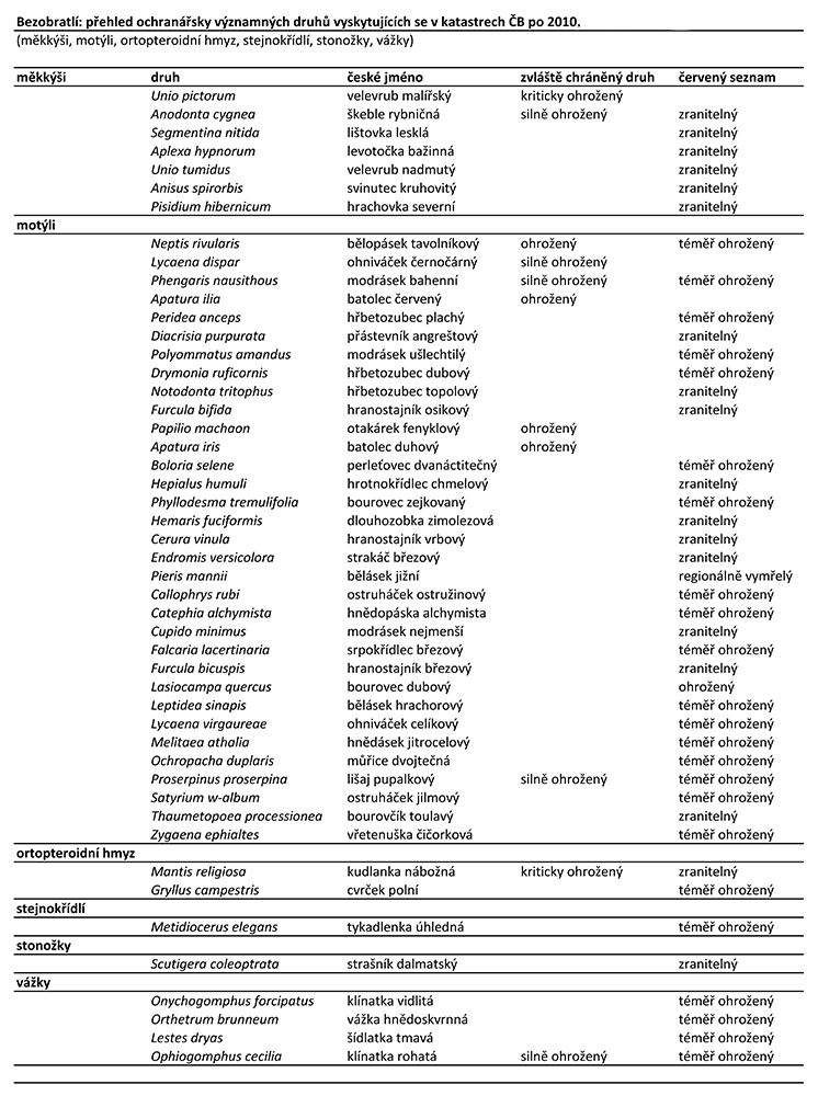 Bezobratlí jsou druhově nejbohatší skupinou živočichů, představují 95 % všech druhů živočichů. Nálezová databáze ochrany přírody eviduje na sedmi katastrech Českých Budějovic 1 370 druhů (stav k září 2025).